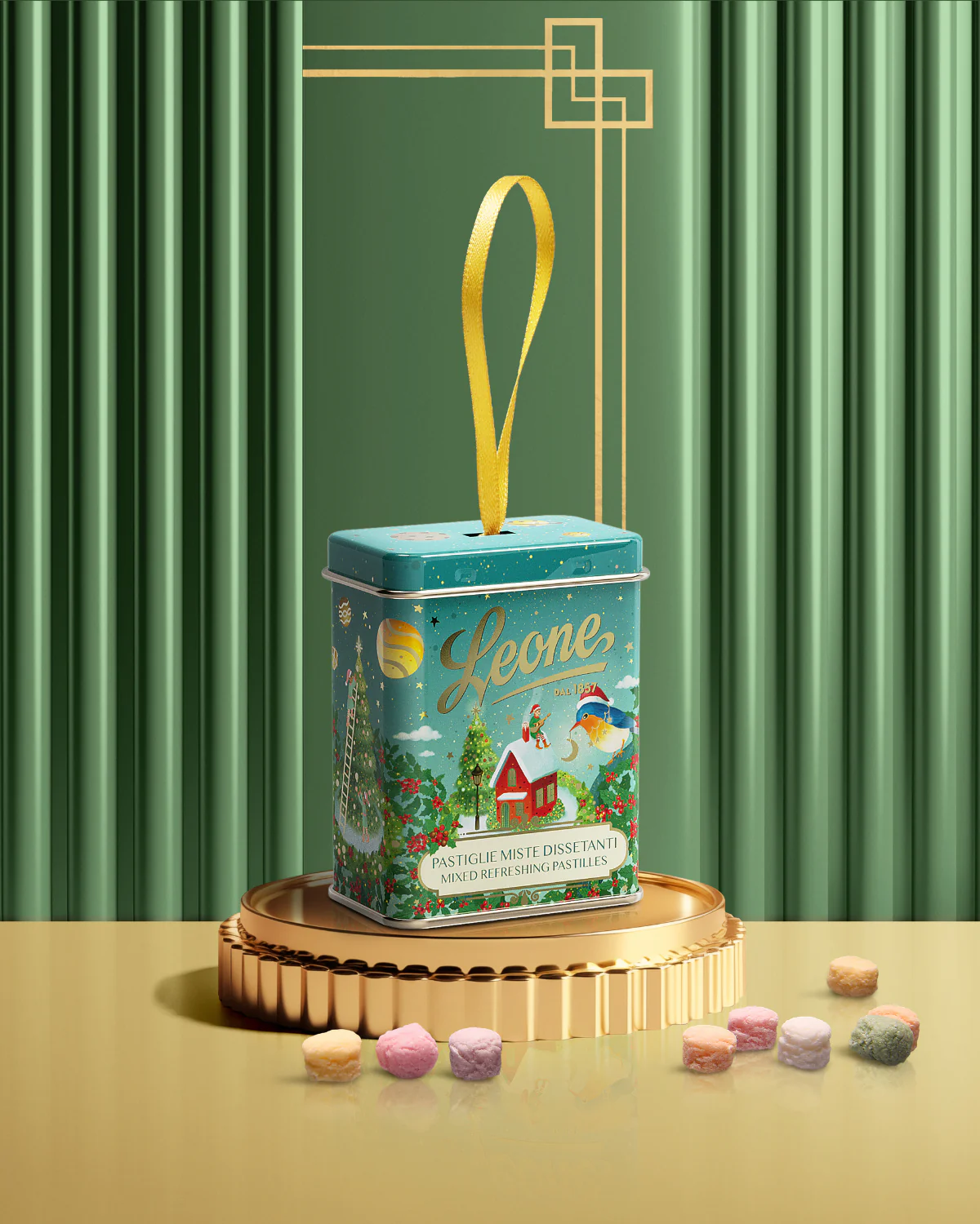 Azzurro – Hanging Tin with Mixed Refreshing Pastilles 30g, Pastiglie Leone