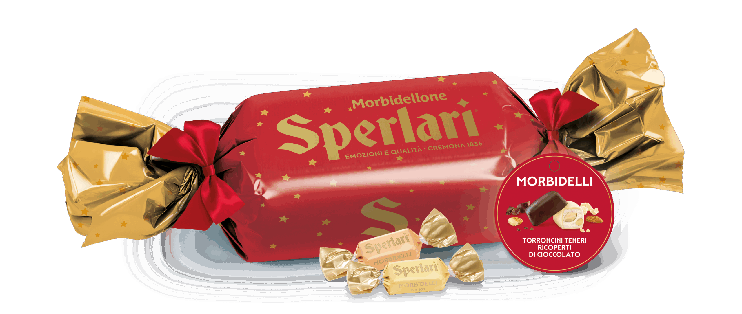 Morbidellone Pehmeitä valko- ja maitosuklaakuorrutteisia torroncineja 350g, Sperlari